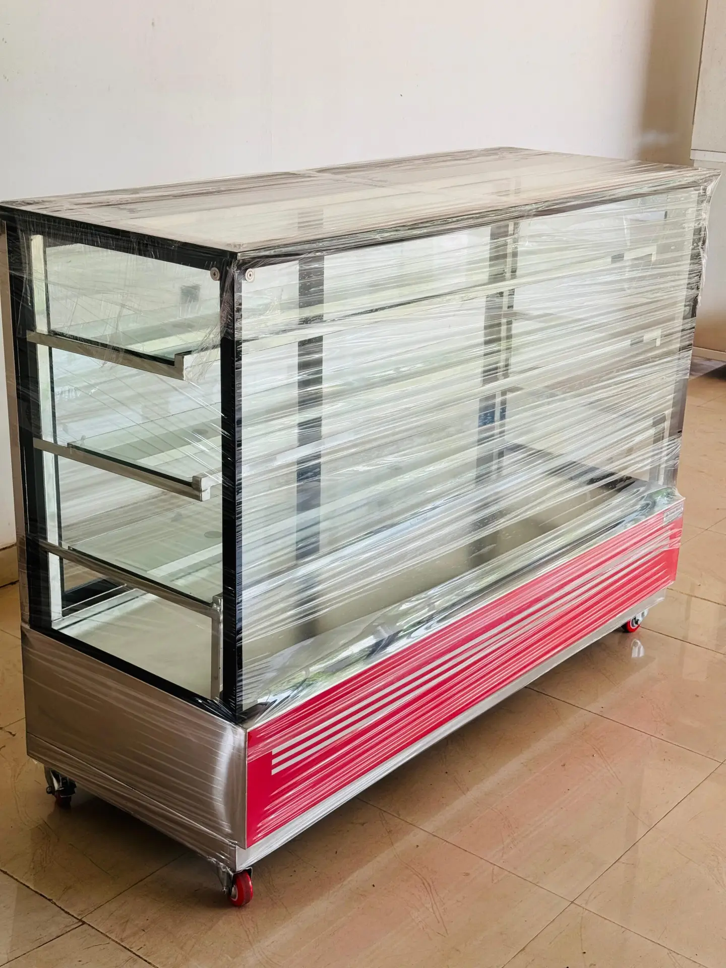 Crafted from high-quality, corrosion-resistant STAINLESS STEEL 202, this display case is built for durability and easy maintenance, ensuring a spotless, hygienic presentation that meets food safety standards. The generous, well-lit interior provides a perfect stage for your products, making them look irresistible and fresh. The sturdy, tempered glass on all sides offers maximum visibility while protecting your goods.