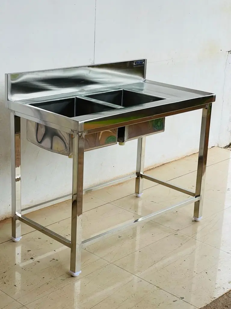 This robust and practical TWO SINK UNIT is engineered for high-traffic environments where reliability and value are paramount. Crafted from durable Grade 202 stainless steel, it offers excellent resistance to rust and corrosion, ensuring a long service life in commercial kitchens, cafeterias, canteens, and catering facilities.